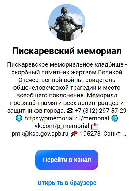 1 декабря 2025 года Пискарёвский мемориал запустил официальный канал в социальной сети Max. Теперь быть в курсе событий, узнавать о памятных датах и глубже погружаться в историю блокадного Ленинграда стало ещё проще. Мы стремимся сделать память доступной — и новые цифровые форматы помогают нам в этом.